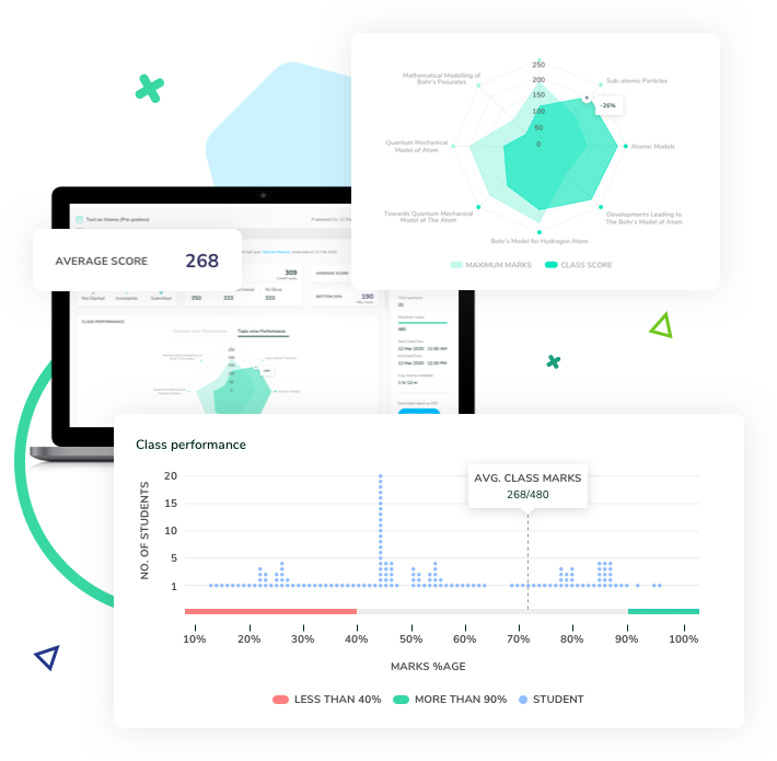 Response of every student is evaluated, analysed and bench marked, to generate a detailed picture of their performance and collective readiness of class.