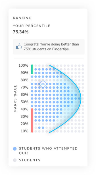 Fingertips is a smart learning system with ability to assess relative preparedness of users in different chapters and concepts through series of assessments that they attempt on the platform. It records every answer of the student and analyze the progress in every chapter and concept, and is able to make personalized recommendations. User can also see their relative performance with all other users on the platform on any chapter or their position on the leaderboard.